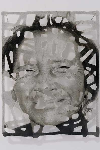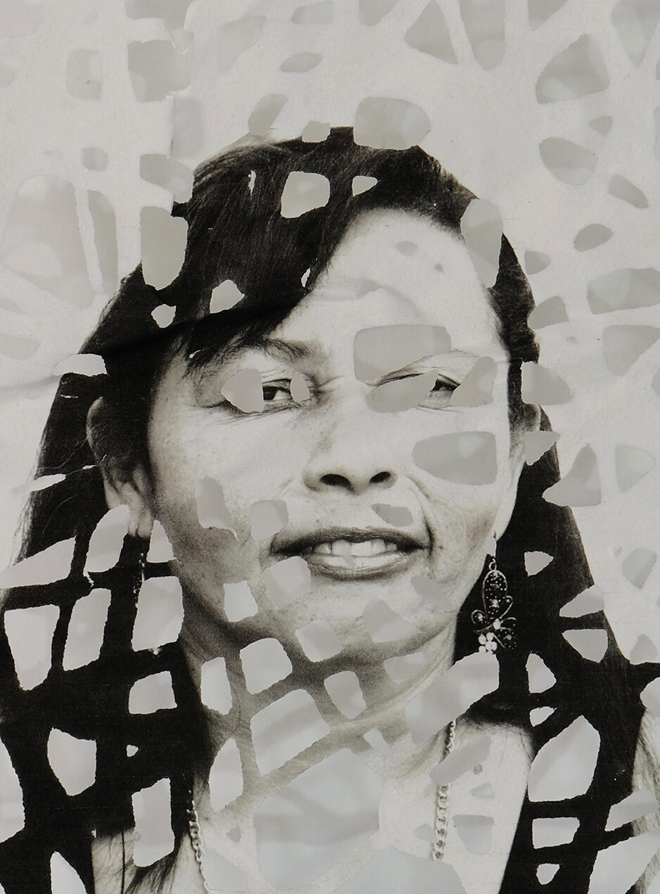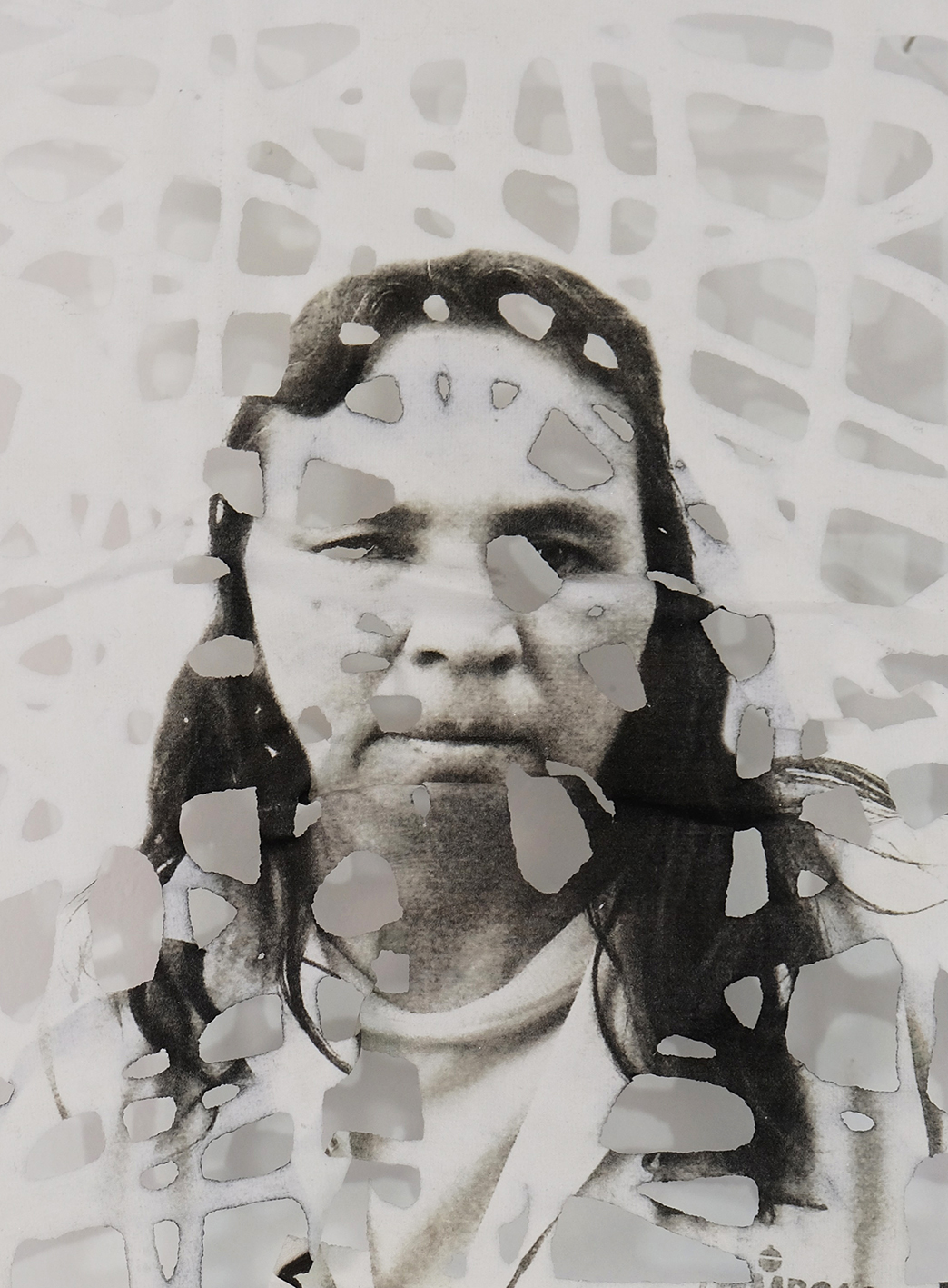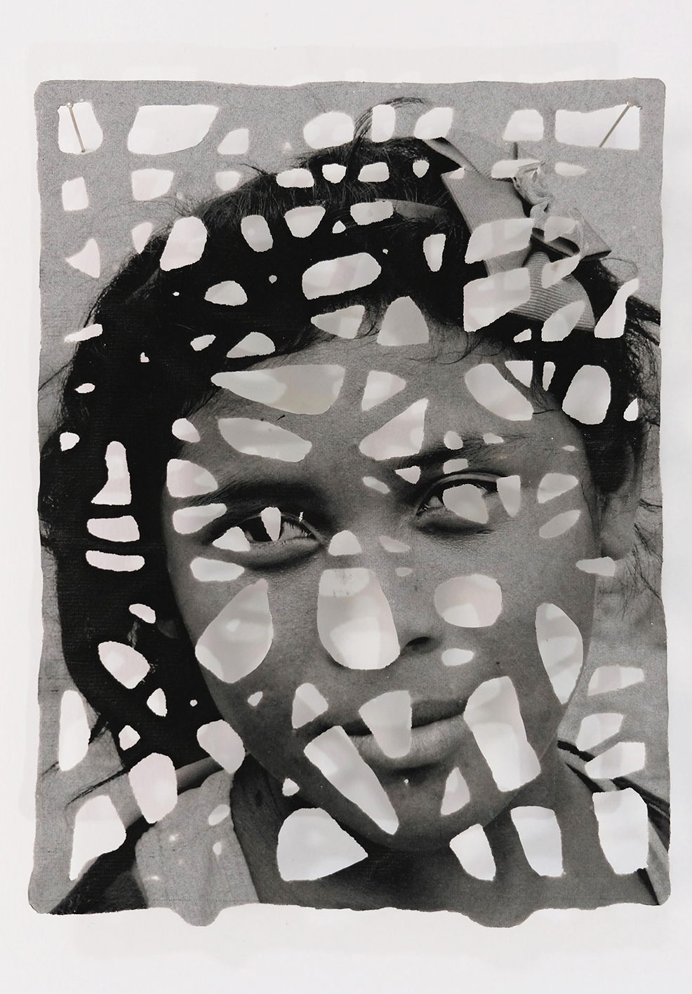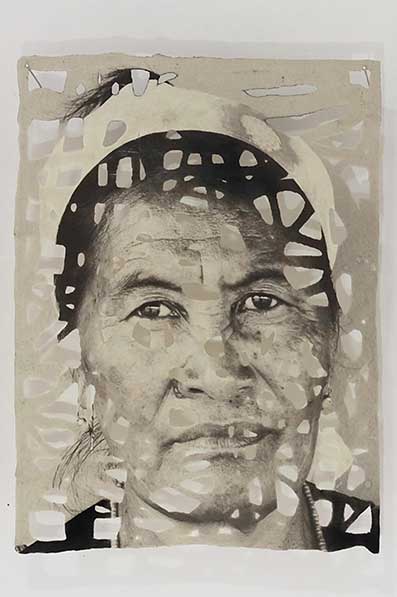 Absences consists of a set of photographs of indigenous women from La Guajira, Colombia, that have been printed on paper made by hand. The faces of the women look at us through the gaps in the paper, with an unusual intensity. They transmit a character and strength that have stood against the many adversities they have experienced.