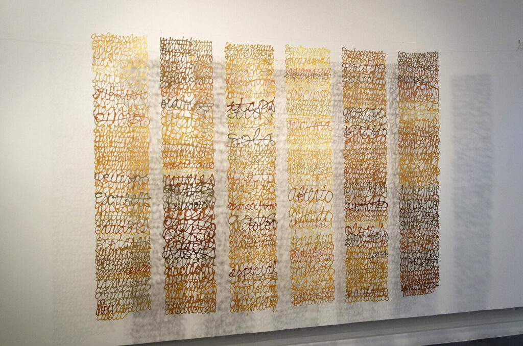 This project is based on the testimonies of women who were victims of violence, as well as statements of women guerrillas who escaped from the ranks of the FARC. It consists of long lists of kidnapped names and letters sent from the jungle to relatives as proof of survival. The pain and emotion contained in these life stories have inspired me beyond my art, they connected me with life experiences that are often traumatic and painful.